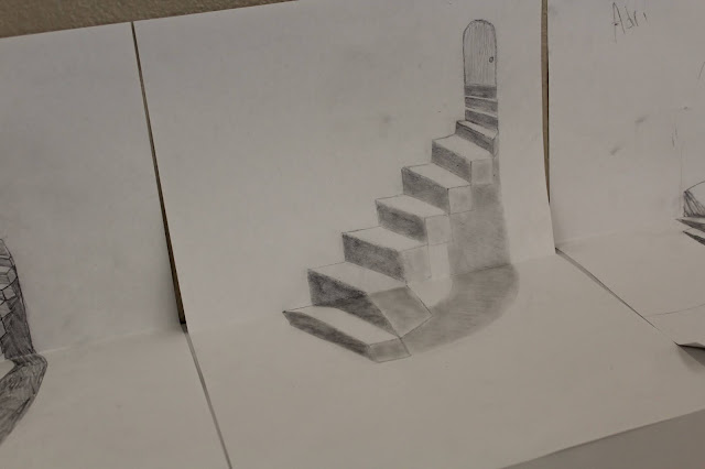 3D Stairway Illusion drawings from my recent Art Camp for 7 to 12 year olds